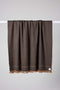 Anschmiegsame Babycamel Wolle in ihrer pursten Form: Einfarbig in naturcamel mit gedrehten Fransen. Über mehrere Stunden hinweg wird diese edle Decke aus reinem Babycamel Haar von Hand gewebt – unverfälscht und absolut natürlich. Die Babycamel Wolle kommt aus der Gobi Steppe der Mongolei.
